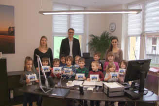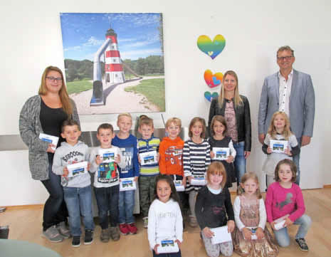 Nach einer aufregenden Busfahrt hieß es für die 12 Vorschulkinder der KiTa Honzath mit Ihren Erzieherinnen Margit Arand und Cathrin Schreibeis „Ab ins Beckinger Rathaus und dort quer durch die Abteilungen“. Ganz zu Beginn stand natürlich der Besuch beim Bürgermeister an. Das Dienstzimmer wurde genau unter die Lupe genommen und auch das Probesitzen auf dem Chefsessel gehört schon als fester Bestandteil zum Programm. Selbstverständlich überreichte Thomas Collmann auch an jedes Vorschulkind eine Brotbox mit dem Motiv des Leuchtturmes aus dem „Saar- Garten“ für das spätere Picknick im Sitzungssaal. Anschließend verschafften sich die Kinder einen Einblick über das Beckinger Amtsblatt und wie es redaktionsfertig gemacht wird. Die Besichtigung des Einwohnermeldeamtes wurde einmal mehr zum Highlight für die kleinen Rathausgäste. Die Kinder staunten nicht schlecht darüber, was der Mitarbeiter hier alles über sie wusste. Bei dem ein oder anderen Passfoto der Kindergartenfreunde konnte man ein bewunderndes „…oh wie süß!“ durch die Gruppe tuscheln hören.