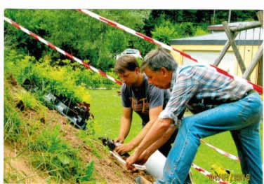 Der 1.Vorsitzende des Obst- und Gartenbauvereins Honzrath, Herr Rychlik, hat es sich gemeinsam mit Herrn Bachmann zur Aufgabe gemacht, den Hügel vom Spielplatz mit ungiftigen und unempfindlichen Bodendeckern zu bepflanzen. Ziel dieser Bepflanzung ist es, den Kindern 2 Aufgänge zur Rutsche zu gestalten und eventuell ein Hangelseil zum Weidentipi anzubringen. Auch die Eltern unterstützen dieses Projekt fleißig und haben den Spielplatz von Unkraut befreit, Rindenmulch aufgefüllt und Hecken und Sträucher bepflanzt und geschnitten. Als nächstes Projekt soll der von den Kindern bemalte Bauwagen mit einer Holzterrasse umbaut werden…. Wir bedanken uns an dieser Stelle noch einmal bei allen Helfern für ihre tatkräftige Unterstützung!